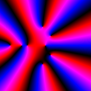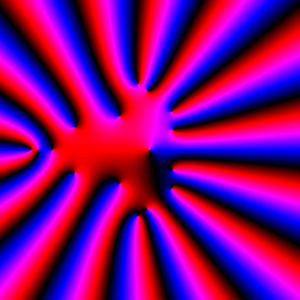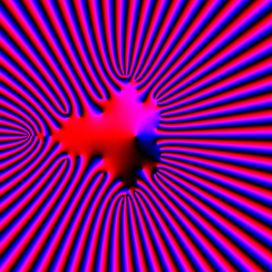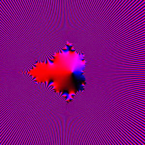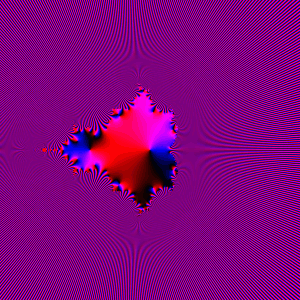 (10 iterations). Degree 512. Note that the inside colors do not really converge, for instance the left internal zero is present only when the iteration number is even. Other internal zeros follow other patterns. |